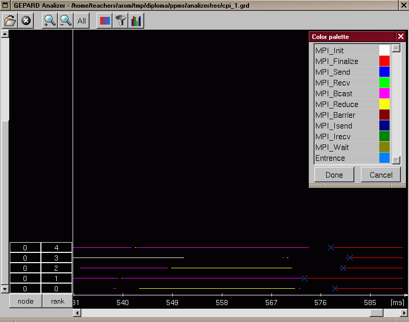 Отображение операций взаимодействий процессов
